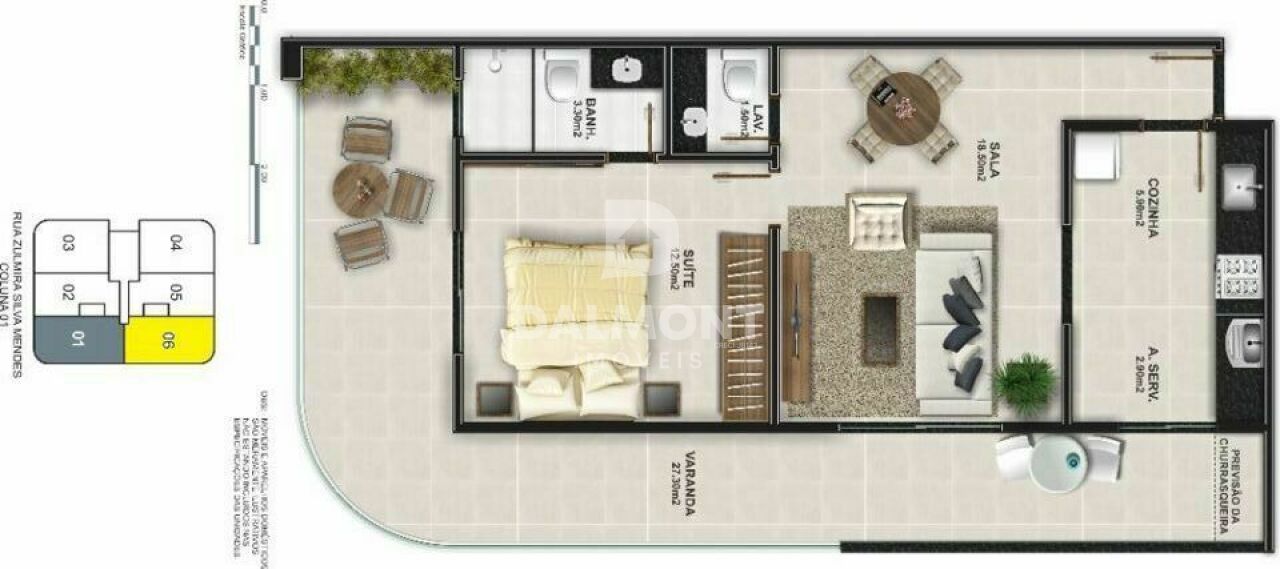 Impecável este apartamento de frente, sol da manhã, varandão, sala grande, cozinha em conceito aberto com armários, 1 quarto bem amplo com entrada para a varanda, 1 banheiro Social (suíte), 1 vaga na garagem com espaço para carro grande.